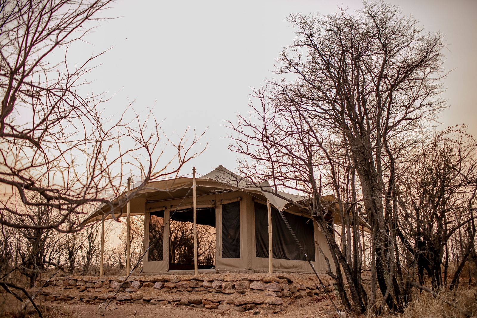 Das Camp besteht aus sechs komfortablen Zelten und einem großen Familienzelt im Beduinenstil. Jedes Zelt ist gemütlich eingerichtet und passt sich harmonisch in die Umgebung ein. Durch die großen Gazefenster haben Sie immer einen schönen Blick auf die Savanne. Die warme Einrichtung mit natürlichen Materialien sorgt für ein angenehmes Wohlgefühl.